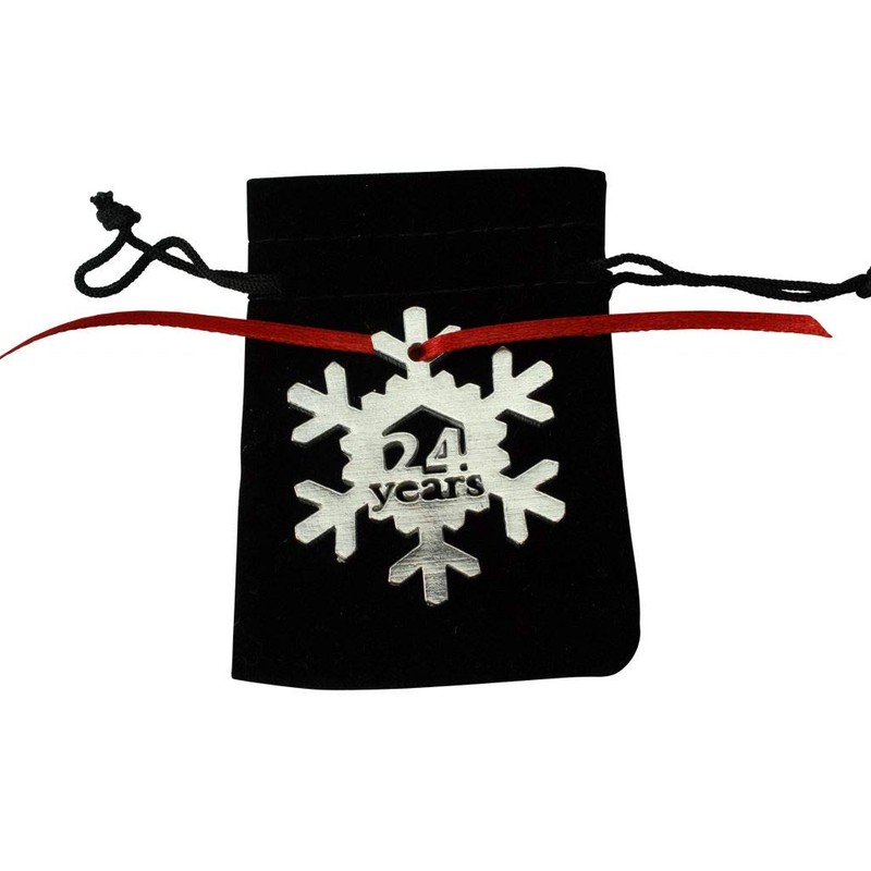 Decoración para árbol de Navidad con forma de copo de nieve de metal, 24 años