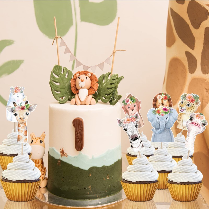 - Lo que obtendrás: el paquete viene con 48 decoraciones para cupcakes de cumpleaños con temática de animales de la selva.