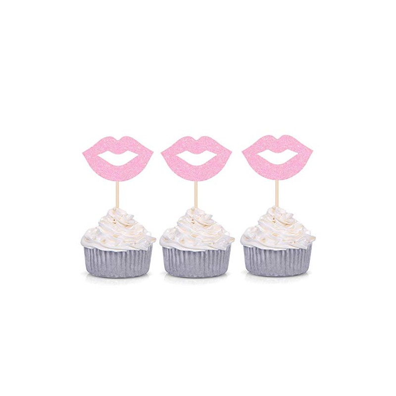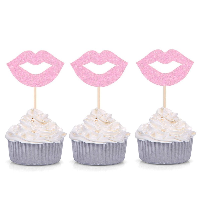 Decoración para cupcakes de labios rosa para despedida de soltera, 24 unidades