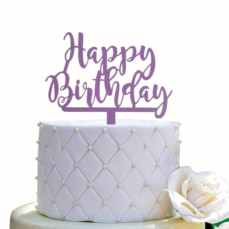 Decoración para tarta de cumpleaños con texto en inglés «Happy Birthday» (acrílico morado)