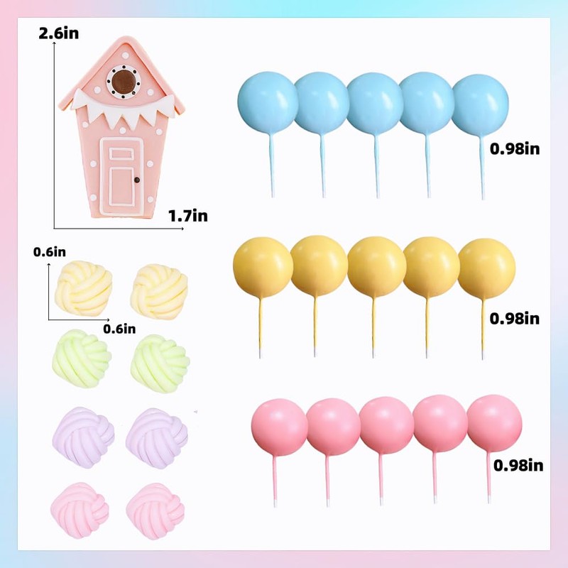 - El paquete incluye: El paquete contiene 36 suministros de decoración de tartas de gato, 6 adornos de tartas de gato, 6 huellas de gato, 8 adornos de bolas de lana, 1 adorno para tartas de casa de gato, 15 adornos para tartas de bolas, tamaño del producto como se muestra en la imagen.