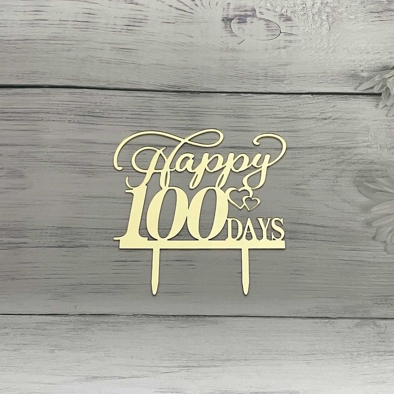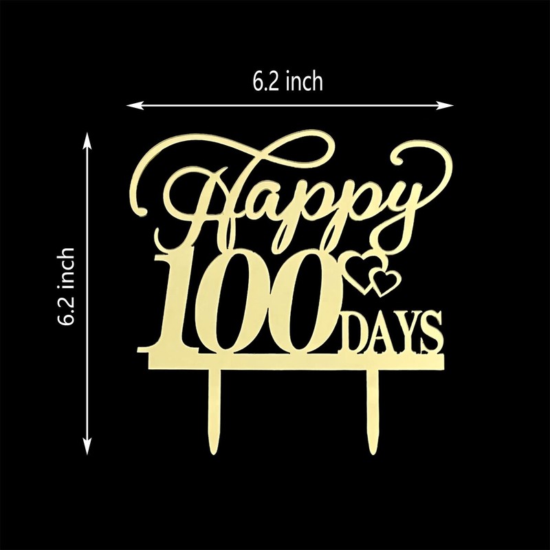 Decoración para tartas Happy 100 Days para baby shower, decoración de tartas Hello Baby 100th Day, decoración de fiesta de celebración de bebé, espejo acrílico dorado