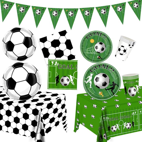 Decoraciones para fiestas de fútbol, suministros para fiestas de fútbol, juego de vajilla incluye pancartas, platos, tazas, servilletas, mantel para niños, decoración de cumpleaños, 24 invitados