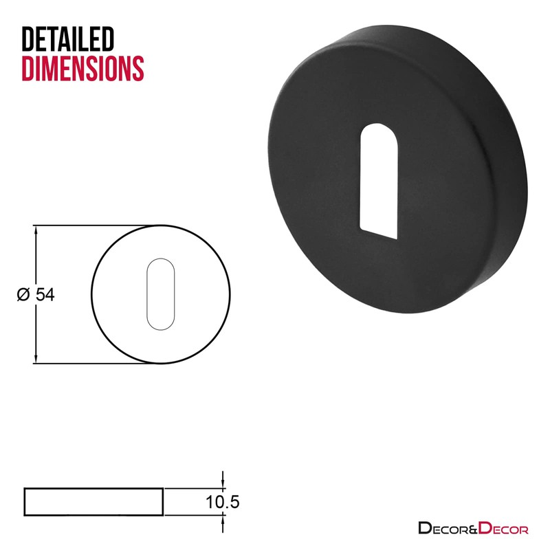Decoranddecor 54mm Round Key Rose Aluminium - Standard Escutcheon (Matt Black)