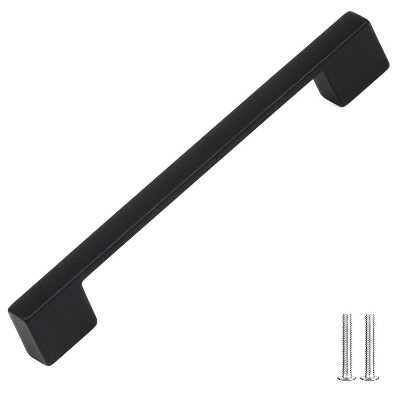 Decoranddecor Dimora Pull Handle D Shape Rectangular Profile Zinc (96mm or 128mm, Matt Black, 1 Pack)