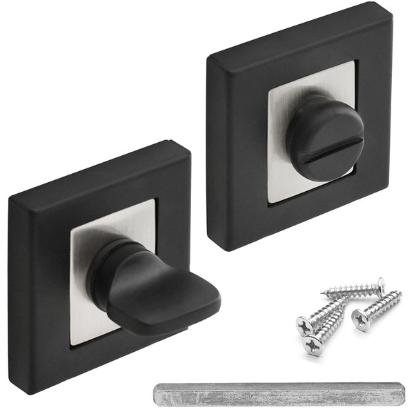 DecorAndDecor Square Escutcheon Thumb Turn Key Rose (Black/Chrome WC Thumb Turn)