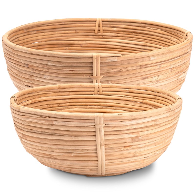- The Decorasian rattan baskets are made from renewable raw materials. The bowls have the sizes D = 32 cm x H = 14 cm and D = 28 cm x H = 12 cm.