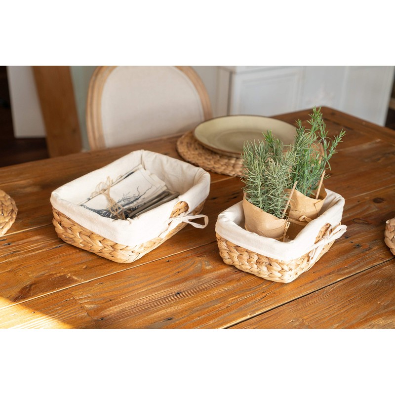 Decorasian Set of 3 Woven Seagrass Bread Baskets with Linen Cloth Water Hyacinth Bread Basket