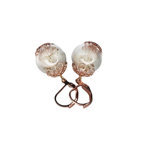 Decorated earrings with dandelion, rose gold-plated, handmade, secure clasp
