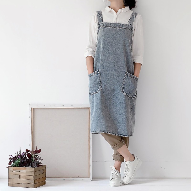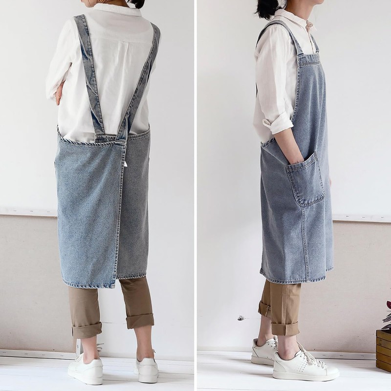 Decorative Apron Denim Jeans Work Apron Work Clothes Unisex Distressed Washed Plain, blue (light)