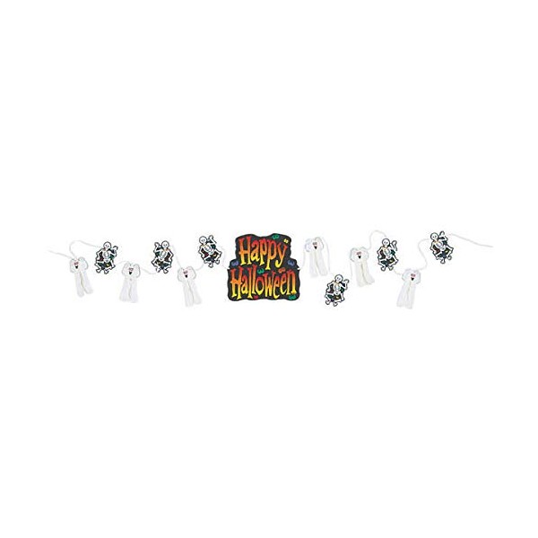 • Tickle your guests funny bones with our 12' Skeleton Crew Trimmer Garland as they walk in to your party for some fun and trick or treating. Perfect décor to complete that funny Halloween party or to invite more kiddies for trick or treating fun.
