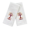 Decorative Fall Hand Towels: Autumn Tree Colorful Leaves and Bird Embroidered Design, Plush Velour Cotton, Set of 2 (Autumn Tree)
