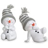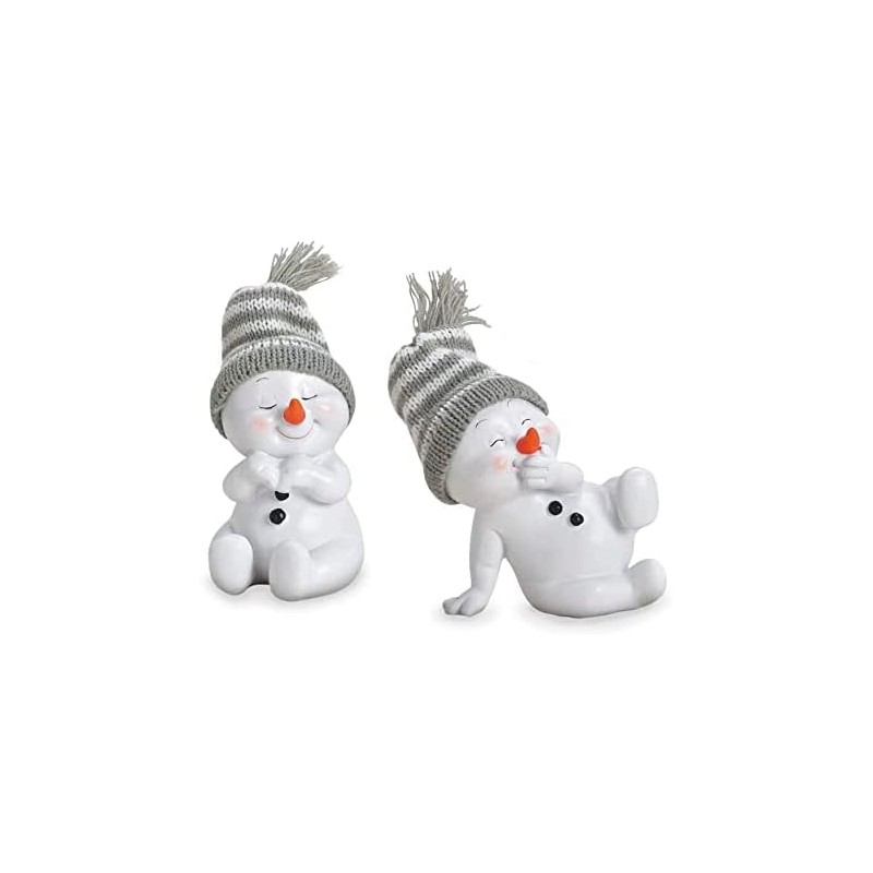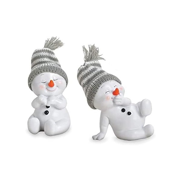 Decorative figure snowman sitting in set of 2, each 11 cm, polystone white with winter hat, textile wool, decorative figure, snowman figure, iced winter decoration, winter, Christmas