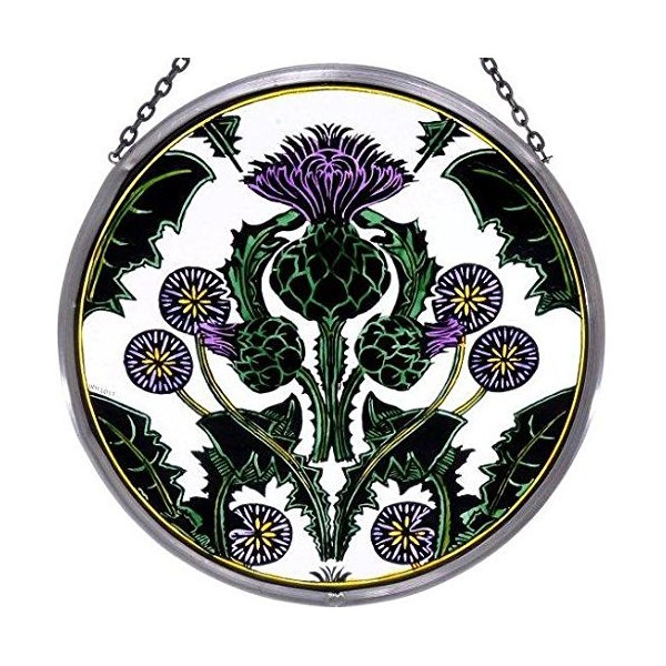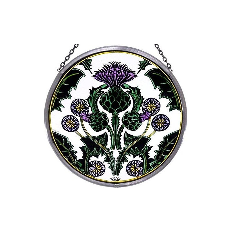 Decorative Hand Painted Stained Glass Window 6" size Sun Catcher/Roundel in a Thistle Nouveau Design