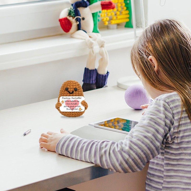 - 🥔 Geschenke Positive Kartoffel: Creative Knitted Wool Potato Doll mit positiven Energiekarten und Glücksbringern, sehr gut geeignet als Ermutigungsgeschenk für Familie, Freunde und Kollegen, um geliebten Menschen Wärme und Kraft zu geben