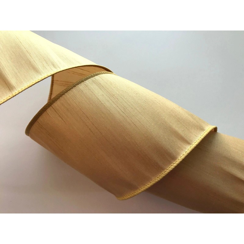 Decorative Ribbon Gold Faux Dupioni Ribbon, 4 Inches Wide, Wired Edge, 3 YARDS