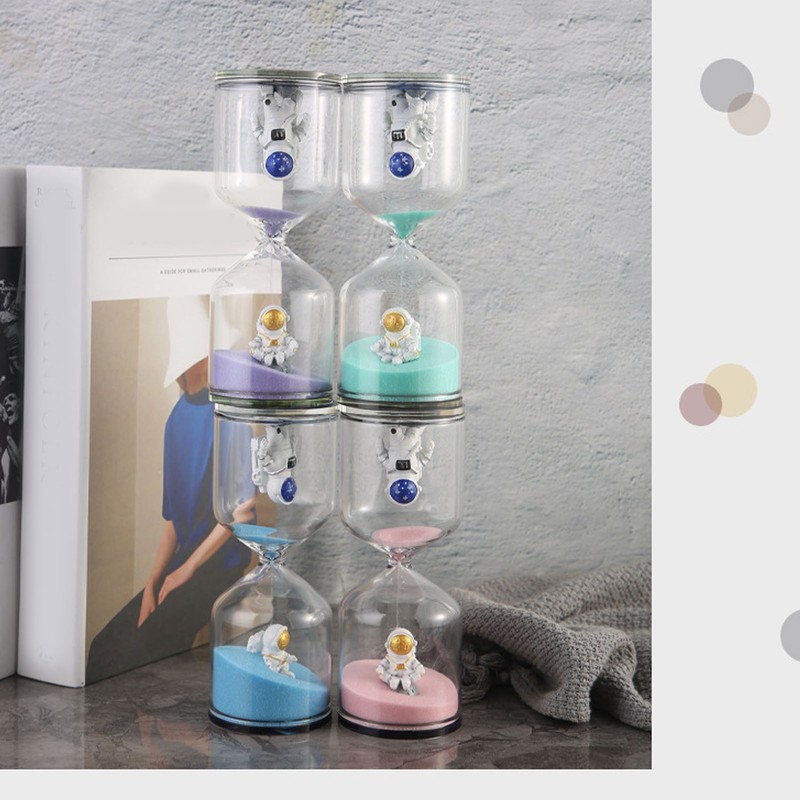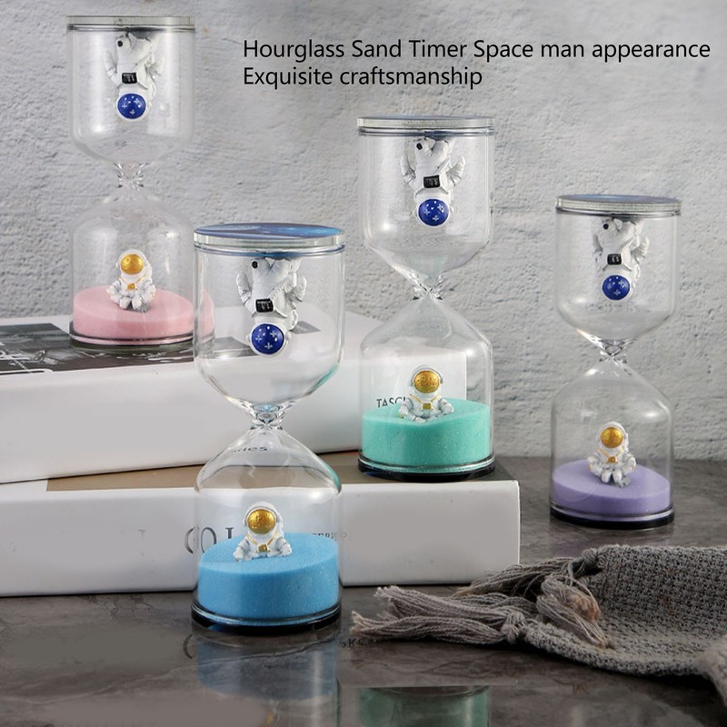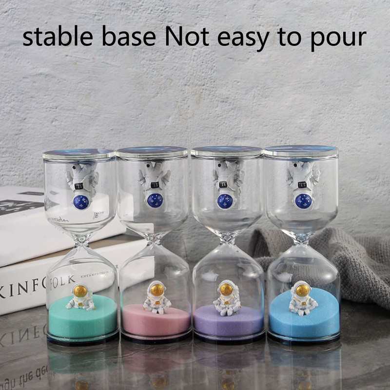 1、TEACHING HOURGLASS: Hourglass timer helps young or special needs students understand time more visually and is perfect for special education classrooms. 2、HOME DECORATION: Space man appearance and exquisite craftsmanship constitute the perfect home decoration, also suitable for the office. 3、WIDELY USED: Improve life efficiency, can be used to set the time for children to play games, yoga practice time, kitchen countdown, etc. 4、WARM NOTE: Please allow ±10% time deviation for the sand timer. small children under 3 years old should be supervised by an adult when using the timer. 5、RELIABLE MATERIAL: Made of excellent glass, not easy to damage, High transparency, and with smooth surface, which is easy to clean and can be used for a long time.