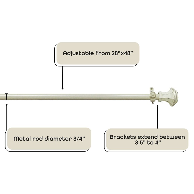 Decorative Window Curtain Rods with Finials, 28 to 48 Inches, 0.75 Diameter - Buono II, Carson Series - Lightweight & Easy to Install, Adjusts Telescopically to Fit Any Window by Achim Home Decor