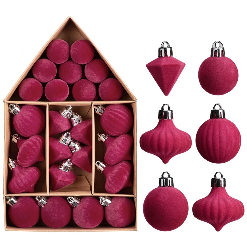 Decorbyhannah 24ct 4cm Christmas Ornaments, Flocked Christmas Tree Ball Rose Red