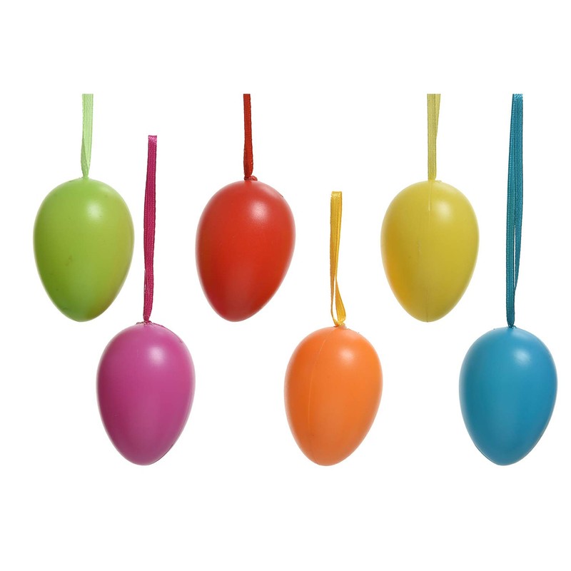 Decoris Easter Eggs for Hanging 6 cm x 6 Pieces Colourful Mix Plastic Hanging Decoration Easter Decoration