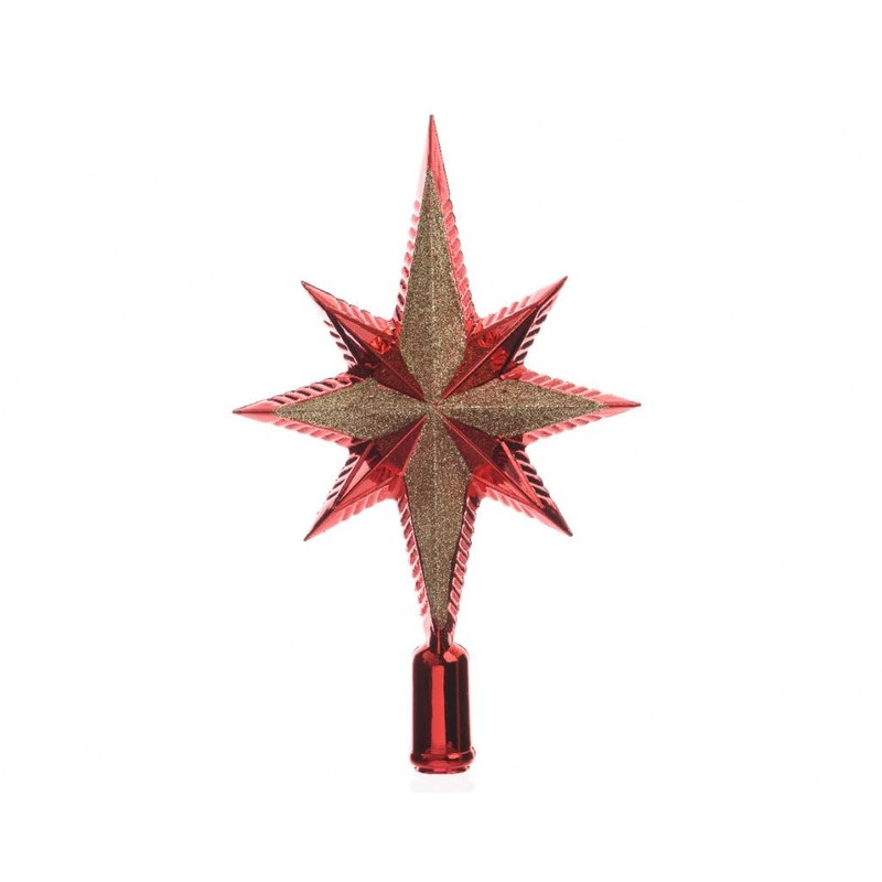 Decoris KAE Christmas Tree Topper Star Plastic Glitter 25 cm Shatterproof Red