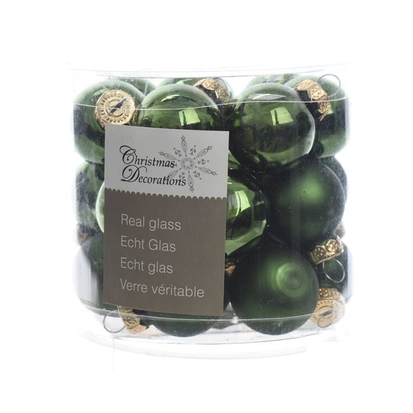 Decoris Pack of 24 Pine Green Mini Glass Baubles