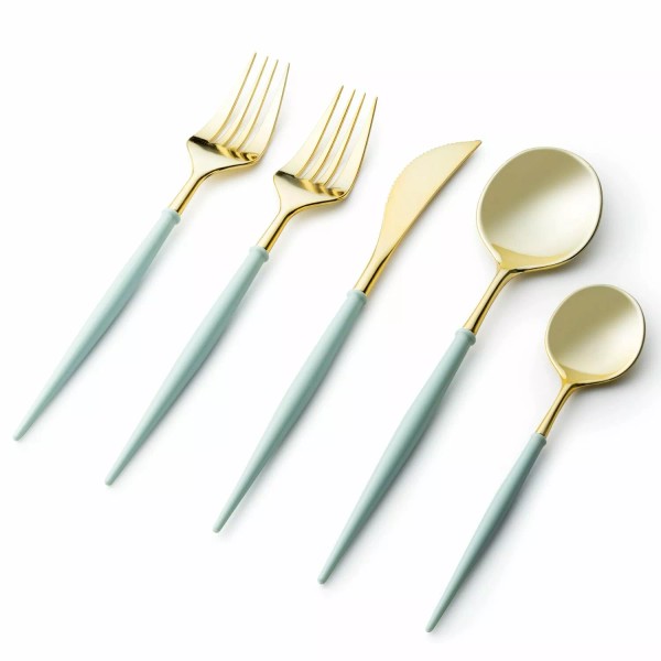 Decorline 40 Pc Elegant Gold and Turquoise Two Tone Cutlery Premium Plastic For Parties