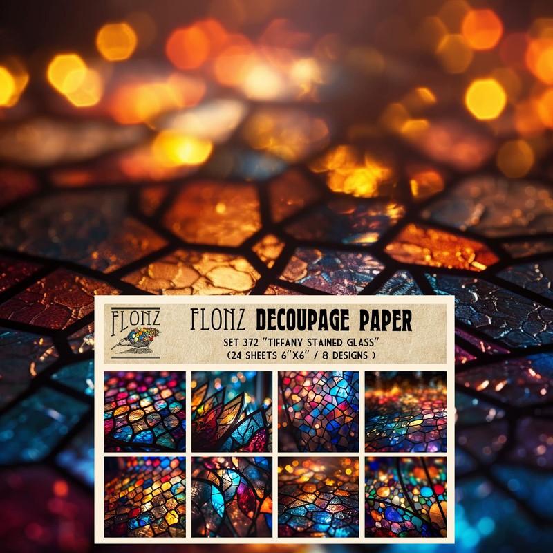 Decoupage Paper Pack (24 Sheets 6"x6") Tiffany Stained Glass # Vintage Styled Pattern Paper for Decoupage, Craft and Scrapbooking