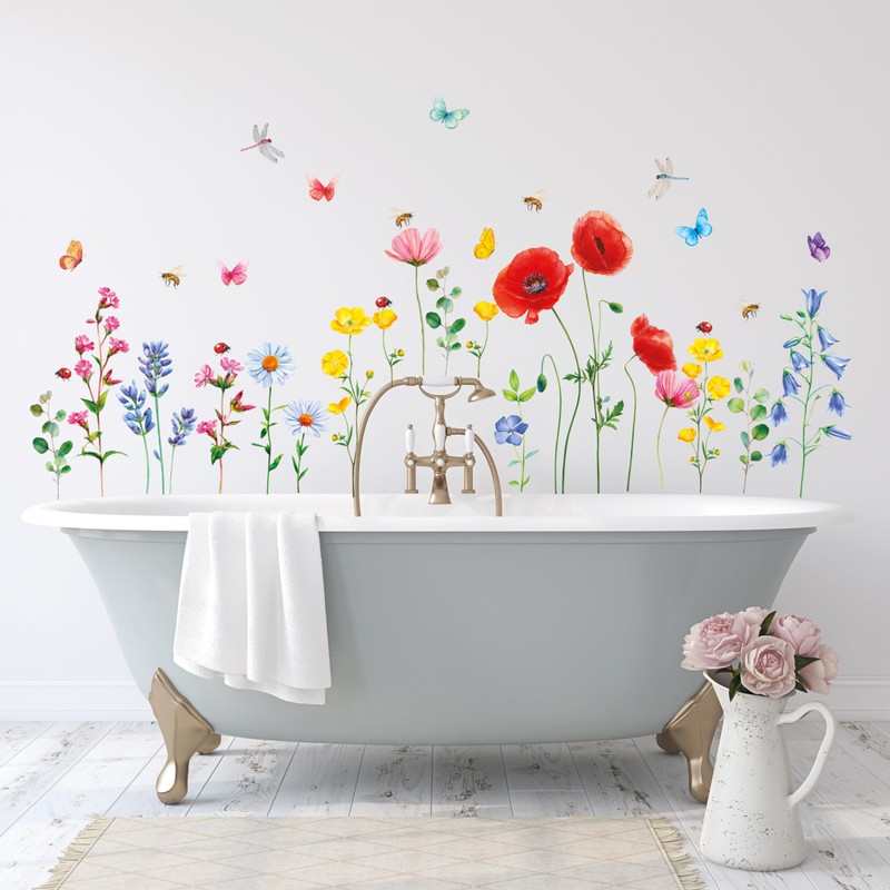 DECOWALL DS9-2103 Wild Flowers Wall Sticker Decor Kindergarten Nursery Room