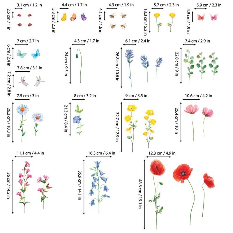 This is a new spring wildflower set. Incredibly delicate watercolor wildflowers and plants and herbs create a light and fresh atmosphere in any room.