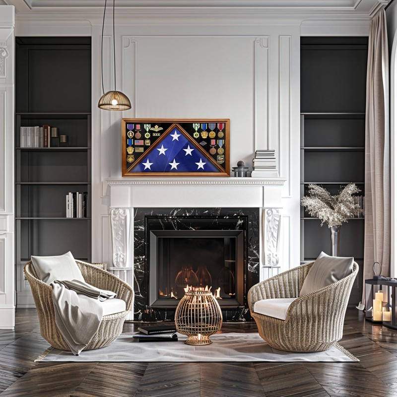 • ๐Œ๐ž๐ฆ๐จ๐ซ๐ข๐š๐ฅ ๐Š๐ž๐ž๐ฉ๐ฌ๐š๐ค๐ž: This burial flag military shadow box is a heartfelt gift for those mourning the loss of a military loved one. It serves not only as a beautiful showcase for your burial flag but also as a unique and enduring memorial keepsake. Preserve the memory of your loved one, honor their legacy, and offer comfort during challenging times with this meaningful and supportive tribute