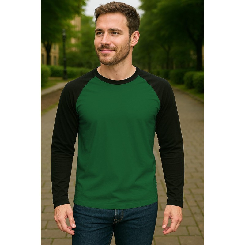 Decrum Green and Black Soft Cotton Jersey Full Sleeve Raglan Shirts for Men [40012033] | Green&Blk Rgln Men, M