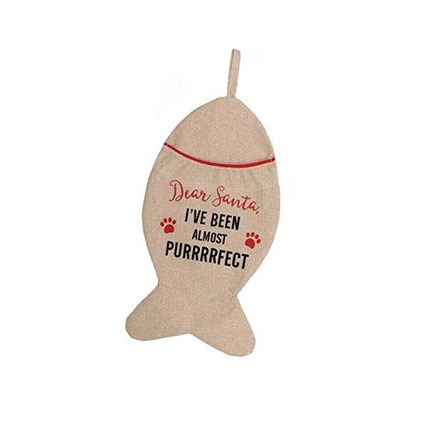 Decsee Pet Christmas Stocking - CATS (Fish shaped) Santa, I've been Purrrrfect