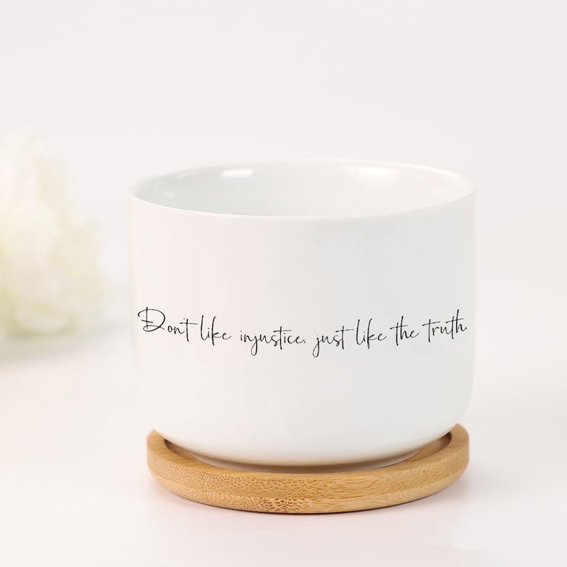 DecStic Don't Like Injustice, Just Like The Truth Ceramic Planter Bible Verse Snake Plant Live Indoor with Pot with Drainage Holes and Saucers Pot for Home Office Desk Garden