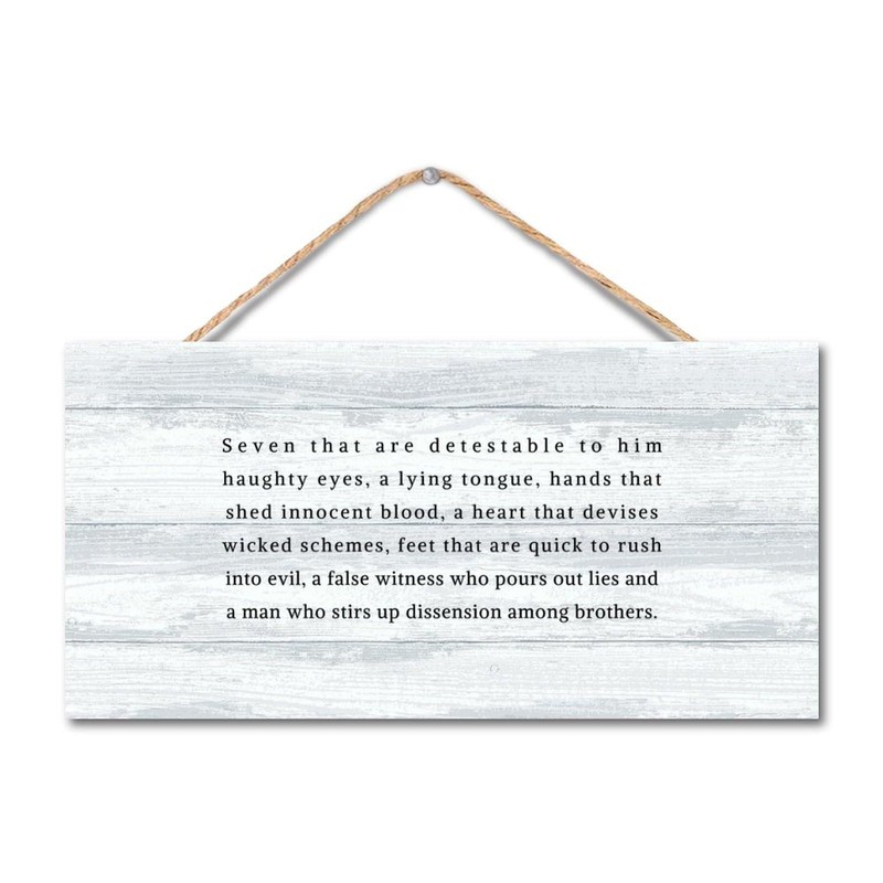 DecStic Seven That are Detestable to Him Haughty Eyes Wood Sign Plaque Quote Saying Classic Wall Art Hanging Decoration for Home Bedroom Living Room Bathroom Housewarming Gift 4x8 in