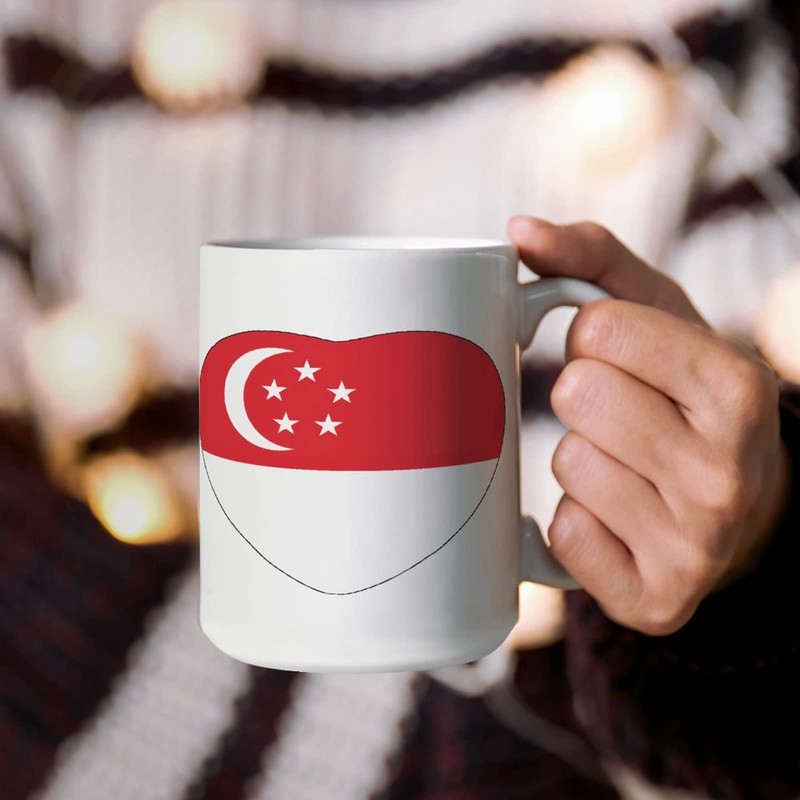 DecStic Singapore Flag Funny Coffee Mugs Heart National Flag White Coffee Mugs 15oz Patriotic Flag Christmas Gift For Friend Mom Dad Boss Housewarming Gift