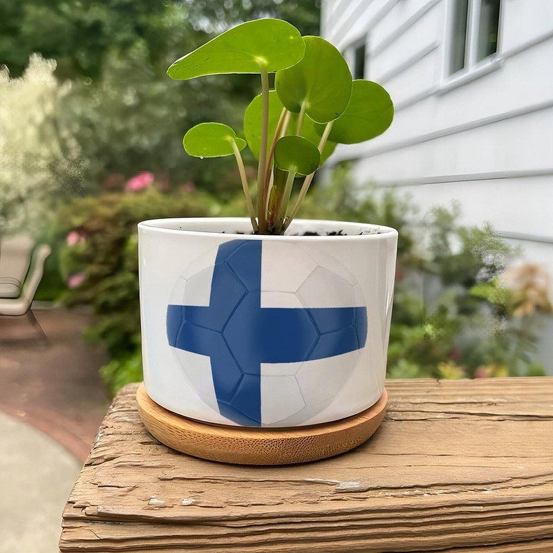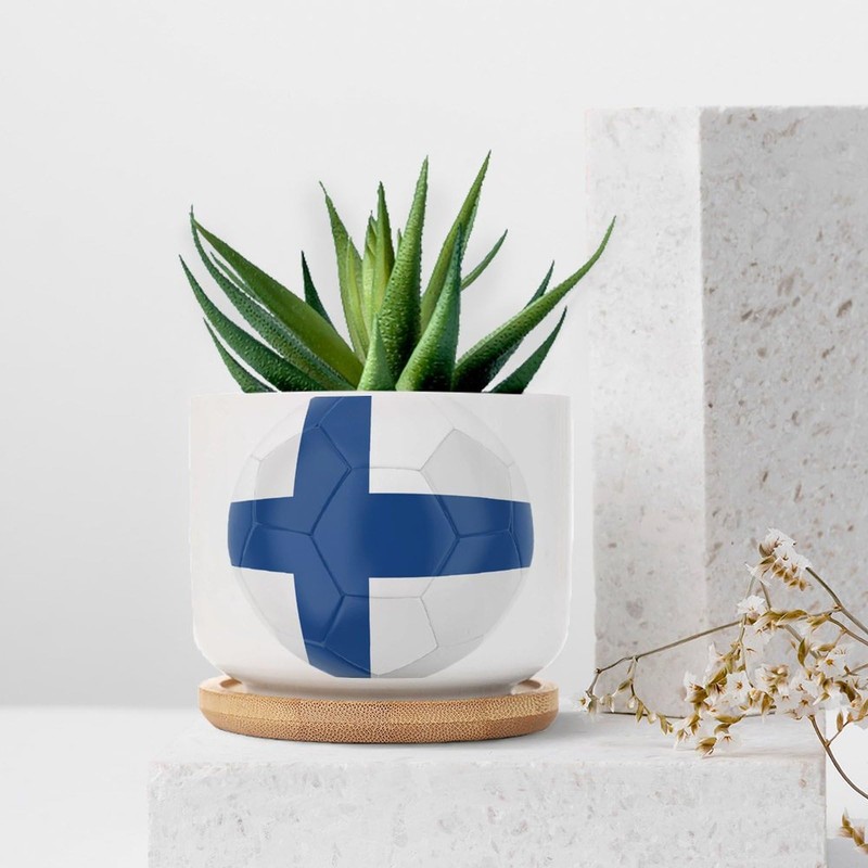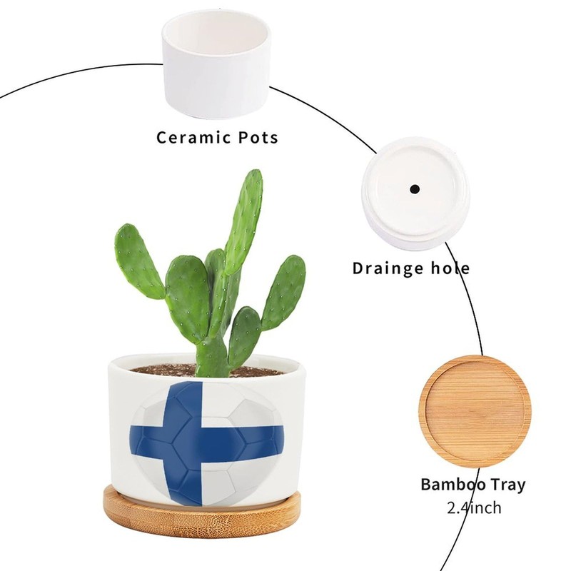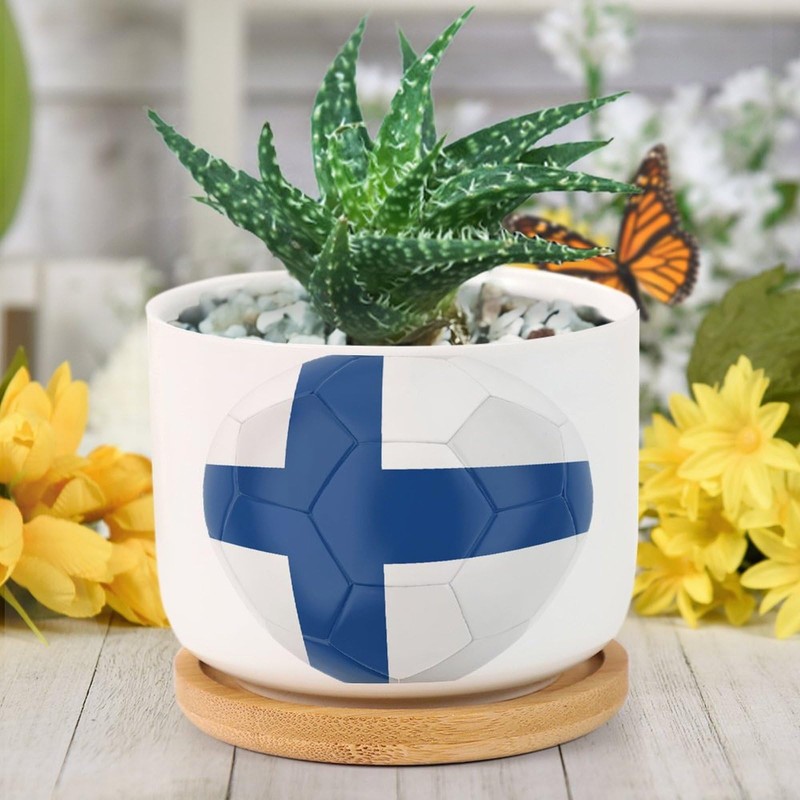 DecStic Soccer Finland Flag Ceramic Planters Snake Plant Live Indoor with Pot with Drainage Holes and Saucers Pot for Succulents Cactus Garden Windowsill
