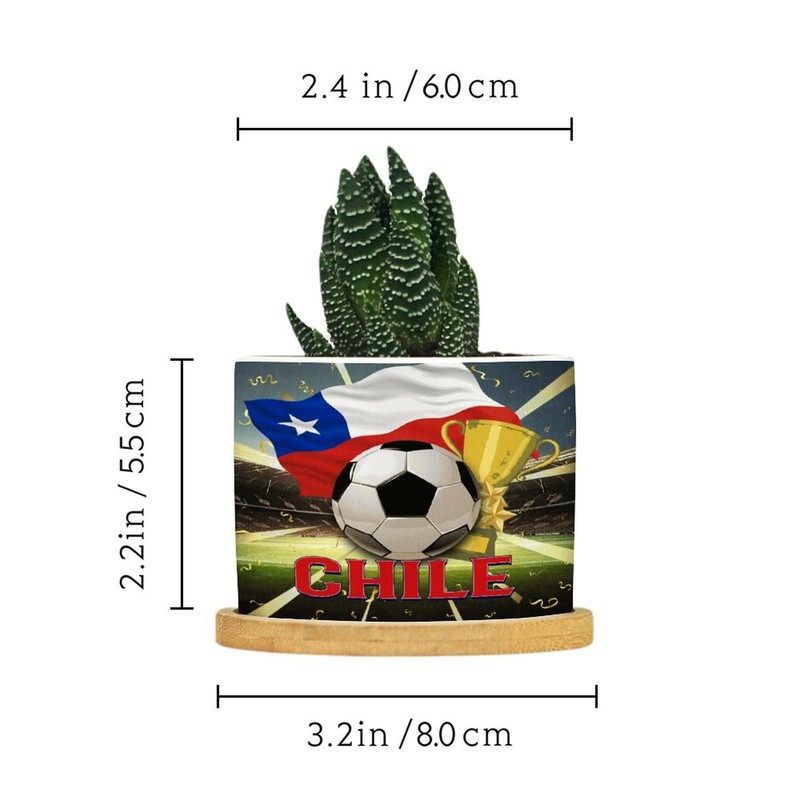 DecStic Soccer Sport with Chile Flag Ceramic Planters Intarnational Festival Pots for Plants with Drainage Holes and Saucers Pot for Succulents Cactus Garden Windowsill