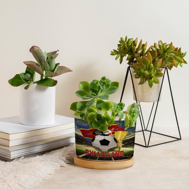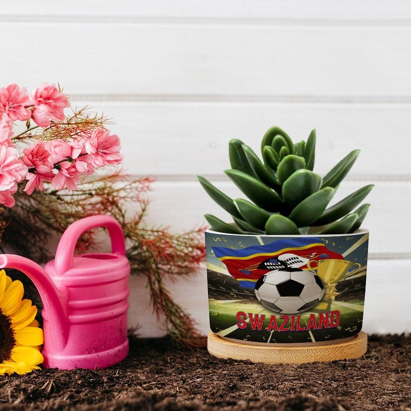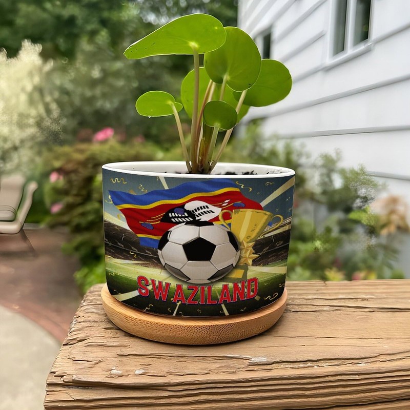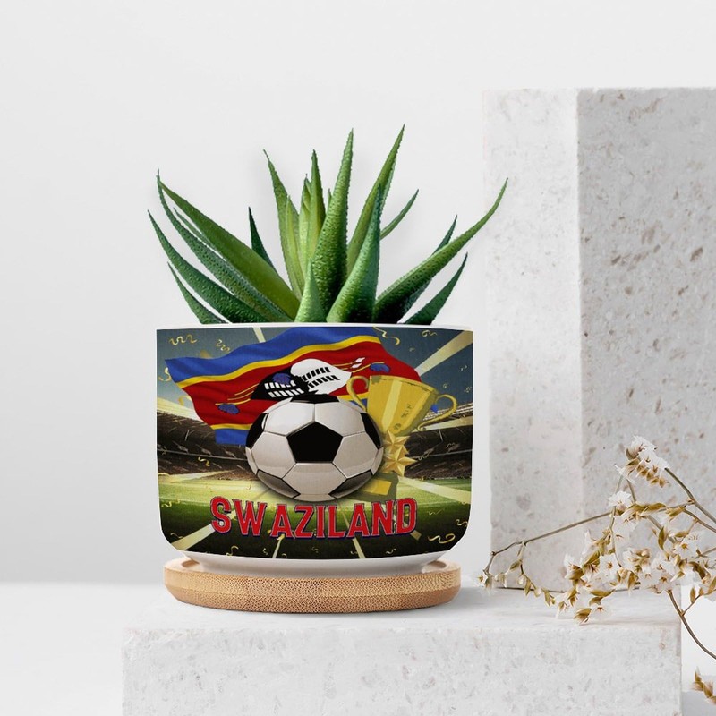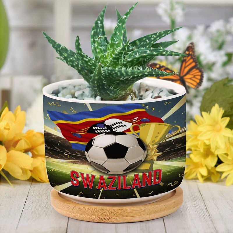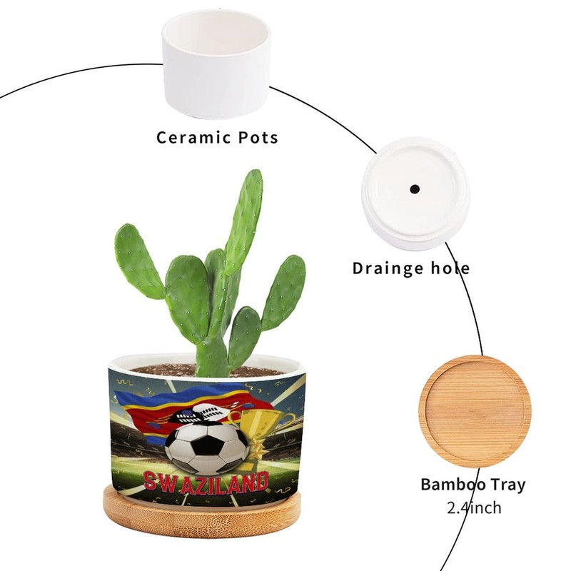 DecStic Soccer Sport with Swaziland Flag Planters Ceramic Country Flags Round Flower Pot with Drainage Holes and Bamboo Tray Pot for Succulents Cactus Garden Windowsill