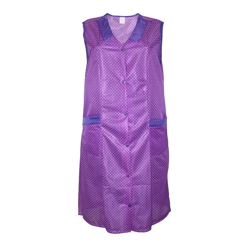 Dederon Apron Nylon Blue or Red, Purple with white dots