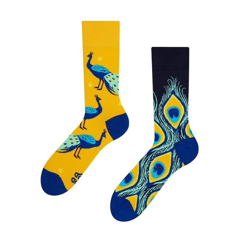 Dedoles Unisex Socks for Women, Men & Kids Cotton Funny Designs Football Bicycle Horses Plants Firefighter Gift Mismatched, Design: Wondrous Peafowl, Colour: Yellow, Size: 3-5 M / 2-4,5 W UK