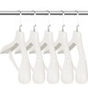 - 【UPGRADE EXTRA WIDE SHOULDER DESIGN】: The jacket hanger feature an upgraded extra-wide shoulder design, which effectively prevents clothes from slipping. The inward curved shoulder contour mimics the natural arc of a human shoulder, ensuring your suits remain in their original shape without any creases. The wide shoulder sweater hangers not only provide ample support for your garments but also evenly distribute the weight, preserving the collar and drape of your suits