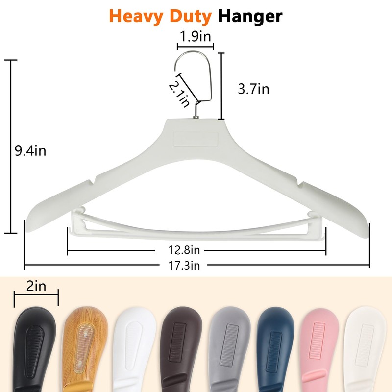 - 【HIGH QUALITY MATERIAL】: Carefully crafted with high-quality heavy-duty plastic, each suit hangers in this set embodies beauty and high-end sophistication. Measuring 17.3"(L) x 9.4"(W) x 2"(H), these plastic coat hangers feature a smooth natural finish, providing both an attractive look to your wardrobe and perfect structure. Properly hanging suits is essential for maintaining their top condition, and without a doubt, our premium suit hanger are by far great choice