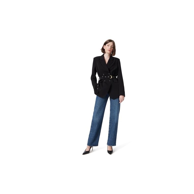 DEE OCLEPPO Women's Everly Double Breasted Belted Wide Blazer Standard, Black