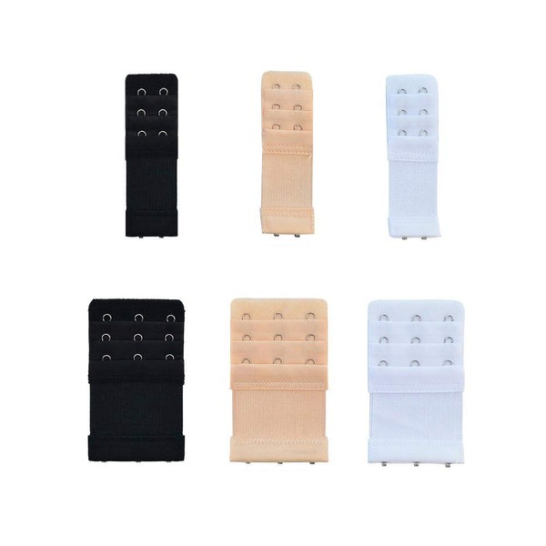 DEEINN DEEINN Bra Extenders 2 Hook, Bra Extensions 3 Hook, Bra Extender, Women Bra Strap Extensions Elastic Extender Set 3 Rows * 3 Hooks& 2 Hooks,Skin,White,Black (6PC 2&3 hook)