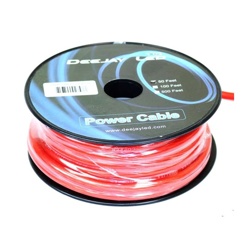 DEEJAYLED Eight-Gauge 50 Foot Red Pure Copper Stranded Power Cable Content Oxygen Free Copper Stranded Wire Style With Thick Red Outer Jacket Power Rating TBH850REDCOPPER
