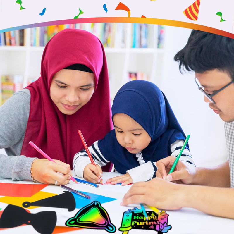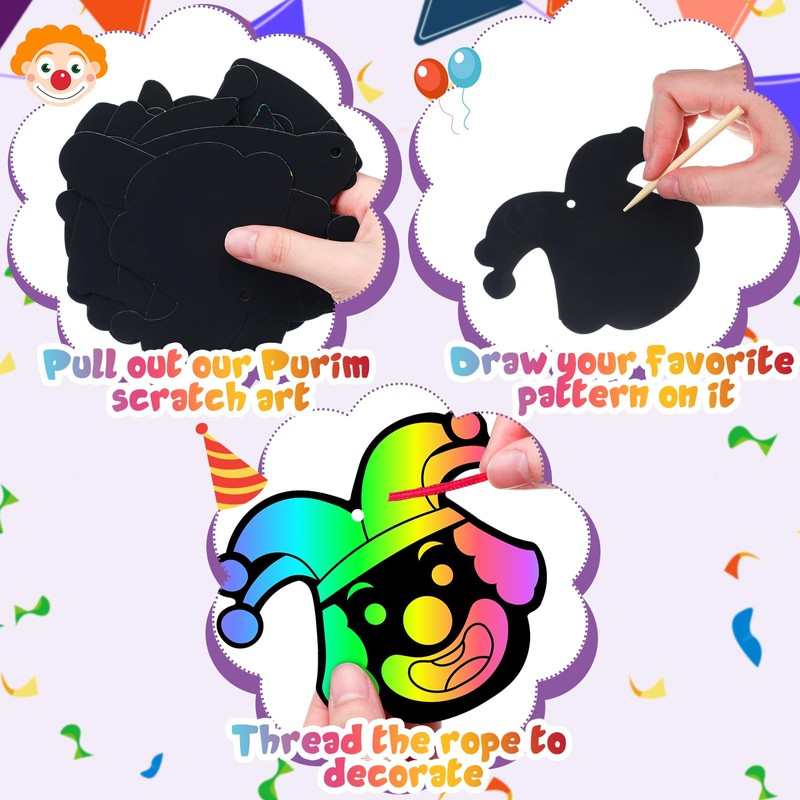 Deekin 120 Pcs Purim Scratch Paper Art Set Purim Colored Scratch Cards Hangin...