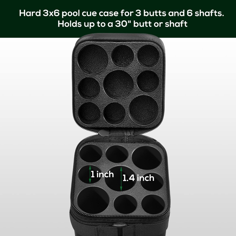 - Proper Size to Use: the 3 x 6 pool cue case measures about 32 x 6 x 4 1/4 inches, with a small pocket of about 6 x 4 x 1 1/2 inches, and a large pocket of about 14 x 4 x 1 1/2 inches; The appropriate size makes it easy and convenient for you to store billiard cues
