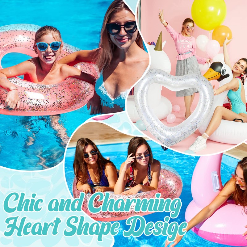 - Nice Combination: you will receive 4 rose gold sequined heart inflatable pool floats and 1 white sequined heart inflatable pool float, a total of 5 pieces, the quantity is enough for you to use as decorations and photo props for pool parties, which can also be shared with others