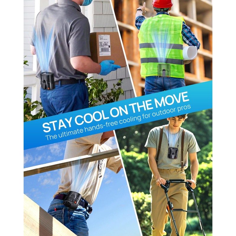 2025 Portable Personal Waist Fan& Neck Fan, 14000RPM Brushless Motor, 40H Runtime Rechargeable, 6-Speed Quiet Operation, Clip-On Personal Body Cooling for Camping/Worksites/Outdoor